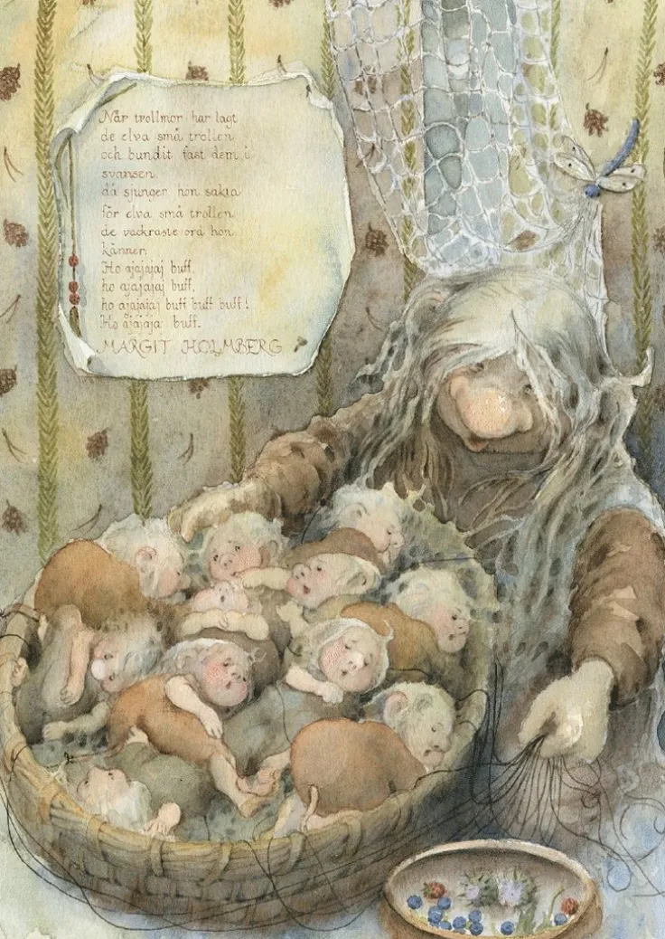 Maj Fagerbergs illustration av sången Trollmors vaggvisa