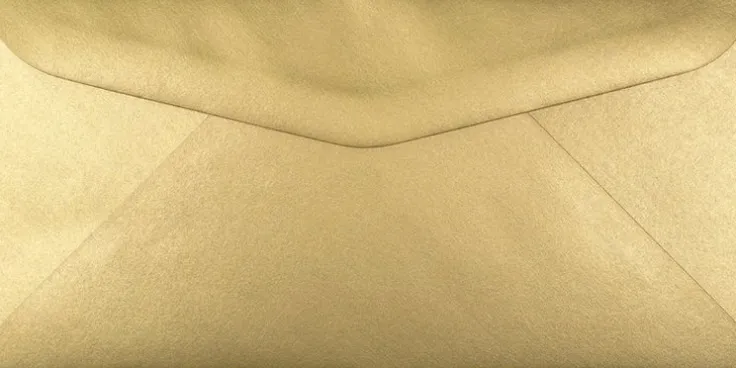 5-pack med E65 kuvert av högsta kvalitet. Kuverten har en strukturerad utsida med en lenare insida för en förfinad profil. Tillverkade av ett syrafritt och PH-neutralt papper i Europa. E65 kuverten passar ett A4 som har vikts två gånger. Kuverten är ett elegant omslag för fantasifull kommunikation. Färg: Guld, en gyllene metallic färg utan struktur. Obs! notera att denna nyans är vit på ena sidan. Ytvikt: 110 g, Mått: 220×110 mm.