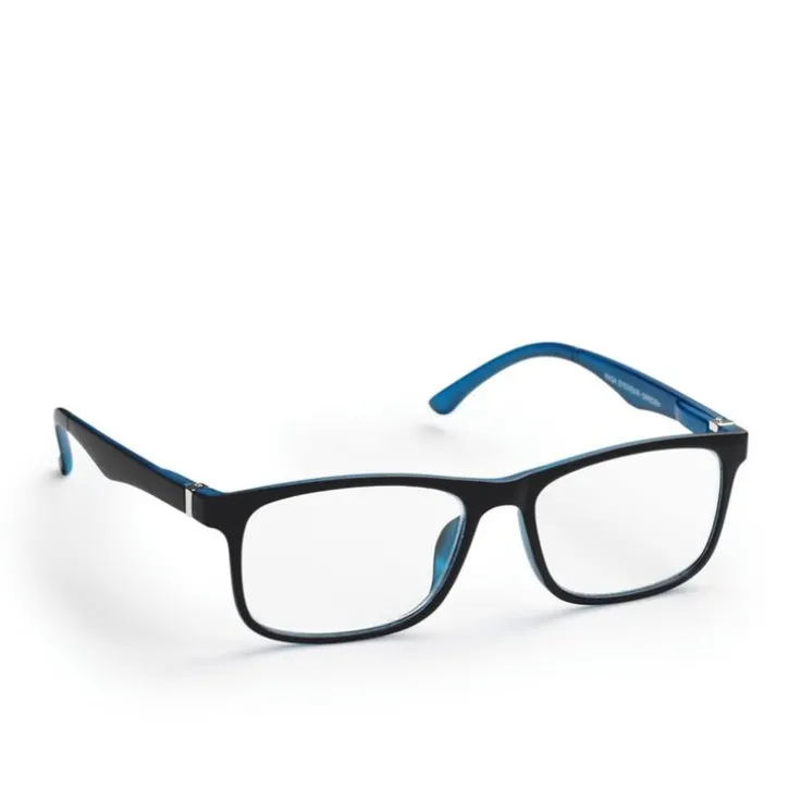 Läsglasögon Stockholm Matt Black styrka +1,5. Klassisk rektangulär båge i färgen svart och blå insida med tunn asfärisk lins som ger perfekt naturlig återgivning. Antinickelbehandlade metalldelar.
