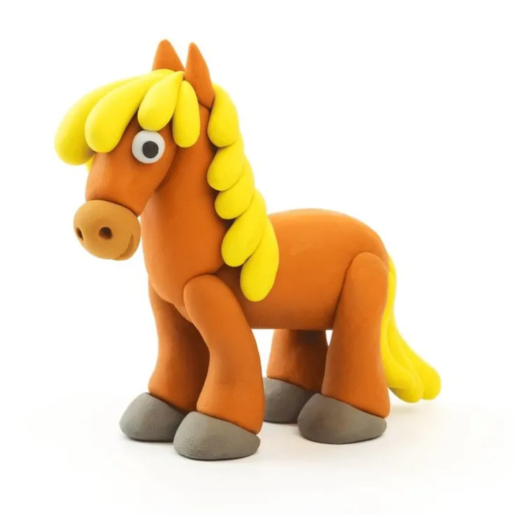 Ett riktigt kul och kreativt set med lufttorkande lera för att skapa en rolig häst av som du sen kan leka med. Detta set innehåller 5 burkar lätt, mjuk, elastisk och lufttorkande lera i klara livfulla färger som går att blanda ihop till nya nyanser och du kan få hjälp i skapandet av en gratis barnvänlig app med interaktiva video-guider som har enkla steg-för-steg instruktioner (på engelska) för hur man skulpterar många olika karaktärer. Du låser upp beskrivningen för hästen med en kod som finns inuti paketet. Låt figuren lufttorka i 24 timmar så kan du sen leka med den precis som en leksak eller dela bilder på din skapelse med dina vänner. När du har fått kläm på de enkla grundläggande teknikerna får du säkert inspiration till att skapa dina helt egna figurer eller scener. Förvara den lera som inte används i lufttäta förpackningar så torkar den inte ut. Innehåll: 5 burkar lufttorkande lera (totalt ca 75 g lera i 5 färger) samt ett informationsblad med bilder på djuret, de olika stegen som krävs för att skulptera djuret, en länk till där ni kan hämta appen och koden som låser upp appens guide för hur man skapar hästen.