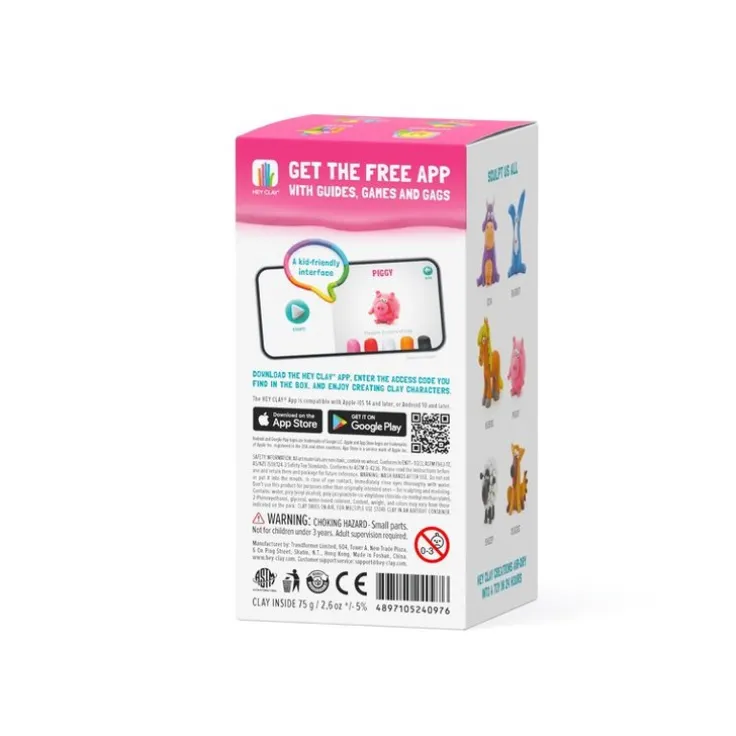 Ett riktigt kul och kreativt set med lufttorkande lera för att skapa en rolig gris av som du sen kan leka med. Detta set innehåller 5 burkar lätt, mjuk, elastisk och lufttorkande lera i klara livfulla färger som går att blanda ihop till nya nyanser och du kan få hjälp i skapandet av en gratis barnvänlig app med interaktiva video-guider som har enkla steg-för-steg instruktioner (på engelska) för hur man skulpterar många olika karaktärer. Du låser upp beskrivningen för grisen med en kod som finns inuti paketet. Låt figuren lufttorka i 24 timmar så kan du sen leka med den precis som en leksak eller dela bilder på din skapelse med dina vänner. När du har fått kläm på de enkla grundläggande teknikerna får du säkert inspiration till att skapa dina helt egna figurer eller scener. Förvara den lera som inte används i lufttäta förpackningar så torkar den inte ut. Innehåll: 5 burkar lufttorkande lera (totalt ca 75 g lera i 5 färger) samt ett informationsblad med bilder på djuret, de olika stegen som krävs för att skulptera djuret, en länk till där ni kan hämta appen och koden som låser upp appens guide för hur man skapar grisen.