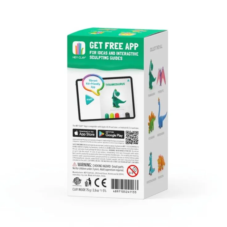 Ett riktigt kul och kreativt set med lufttorkande lera för att skapa en rolig Tyrannosaurus Rex av som du sen kan leka med. Detta set innehåller 5 burkar lätt, mjuk, elastisk och lufttorkande lera i klara livfulla färger som går att blanda ihop till nya nyanser och du kan få hjälp i skapandet av en gratis barnvänlig app med interaktiva video-guider som har enkla steg-för-steg instruktioner (på engelska) för hur man skulpterar många olika karaktärer. Du låser upp beskrivningen för tyrannosaurusen med en kod som finns inuti paketet. Låt figuren lufttorka i 24 timmar så kan du sen leka med den precis som en leksak eller dela bilder på din skapelse med dina vänner. När du har fått kläm på de enkla grundläggande teknikerna får du säkert inspiration till att skapa dina helt egna figurer eller scener. Förvara den lera som inte används i lufttäta förpackningar så torkar den inte ut. Innehåll: 5 burkar lufttorkande lera (totalt ca 75 g lera i 5 färger) samt ett informationsblad med bilder på dinosaurien, de olika stegen som krävs för att skulptera den, en länk till där ni kan hämta appen och koden som låser upp appens guide för hur man skapar sin T-Rex.