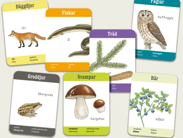 Lilla naturspelet är ett roligt kortspel med enkla regler för hela familjen. Samla djur och växter i olika familjer: fyra blommor, fiskar, fåglar, svampar och många fler. Baserat på Björn Bergenholtz omåttligt populära naturserie Känn igen 25. Passar från 4 år och uppåt.