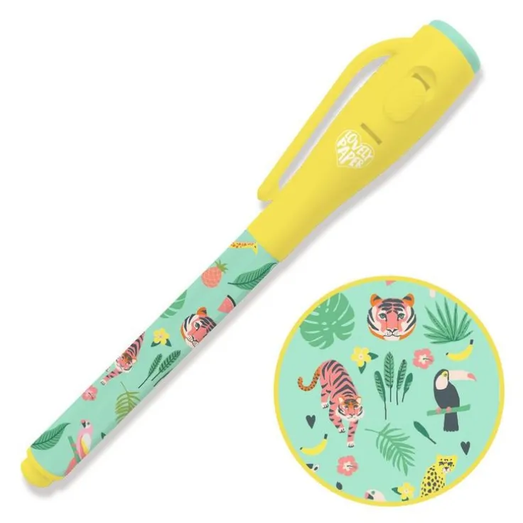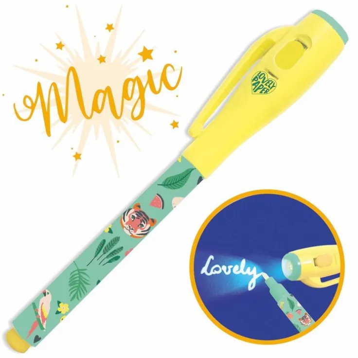 Utforska oanade kreativa möjligheter med denna magiska fiberpenna som har dekorerats med bilder av stjärnor, månar och nattens djur. Denna fantastiska penna har osynligt bläck som låter dig skapa hemligheter som bara avslöjas i UV-ljuset från lampan i pennans kork, eller andra UV-lampor – perfekt för att skriva hemliga meddelanden, dagboksanteckningar och rita kluriga skattkartor. Pennan är ca 13 cm lång och lampan i pennans lock har en praktisk av/på-knapp samt drivs av 3 stycken LR44 HD batterier som ingår.