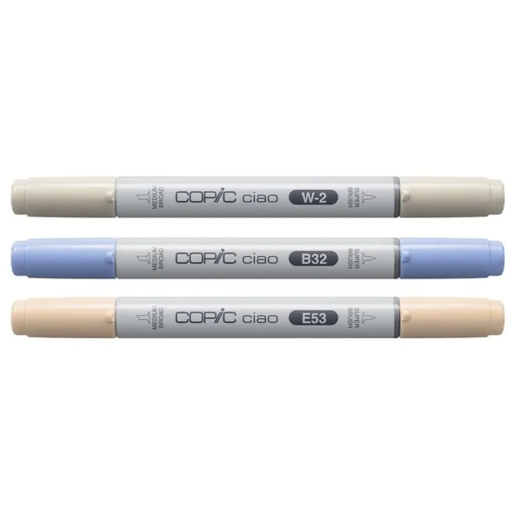 Copic Ciao är en professionell grafisk marker med två spetsar. Penselspets i ena änden och medelstor bred i andra, för mångsidiga penseldrag som ger fina detaljer och jämn täckning. Alla Copic Ciao är påfyllningsbara med bläck och spetsarna är utbytbara. Den är ultrablendbar och finns i 180 kulörer. Designad med barnsäkerhet i åtanke med perforerade korkar.