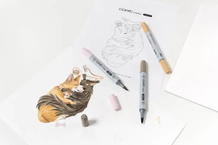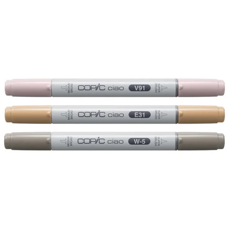 Copic Ciao är en professionell grafisk marker med två spetsar. Penselspets i ena änden och medelstor bred i andra, för mångsidiga penseldrag som ger fina detaljer och jämn täckning. Alla Copic Ciao är påfyllningsbara med bläck och spetsarna är utbytbara. Den är ultrablendbar och finns i 180 kulörer. Designad med barnsäkerhet i åtanke med perforerade korkar.