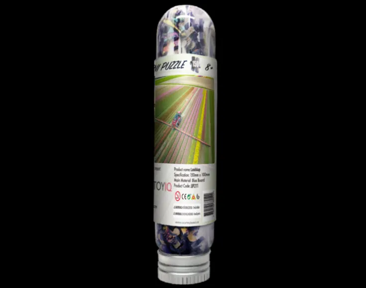 Lägg ett minipussel på 150 bitar med ett fint motiv över ett blommande landskap. När det är färdiglagt har det storleken av ett vykort. Bild på motivet ligger i tuben.