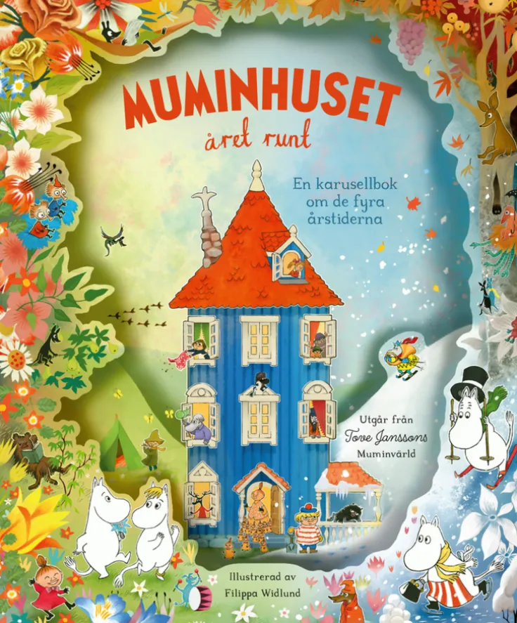 Festligheterna kring Mumin 80 år fortsätter med den här fantasifulla karusellboken om årstidernas gång i Muminhuset.Muminhuset året runtär illustrerad av Filippa Widlund utgående från Tove Janssons älskade mumintroll.