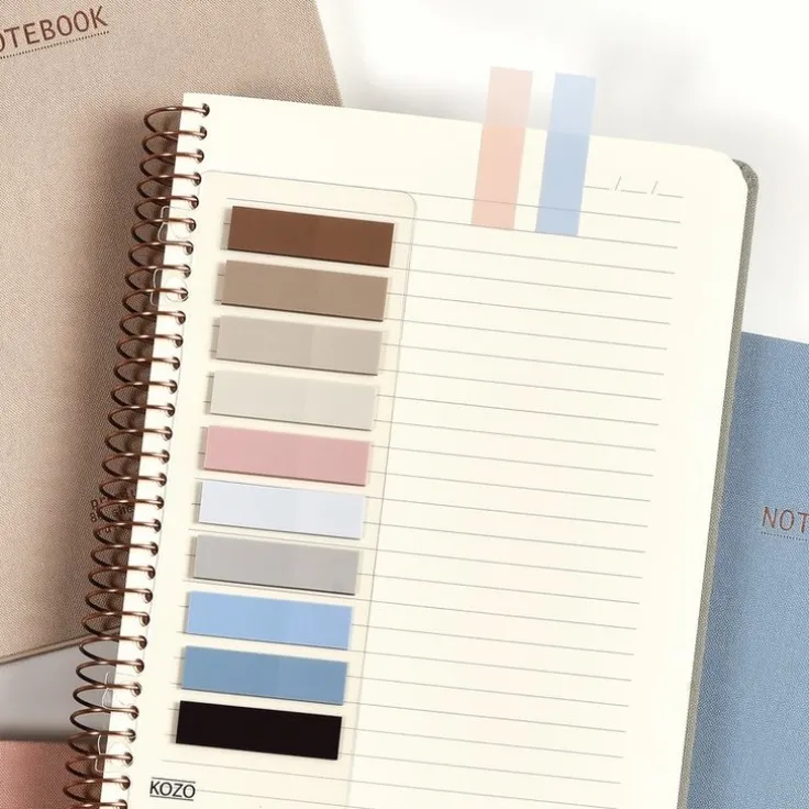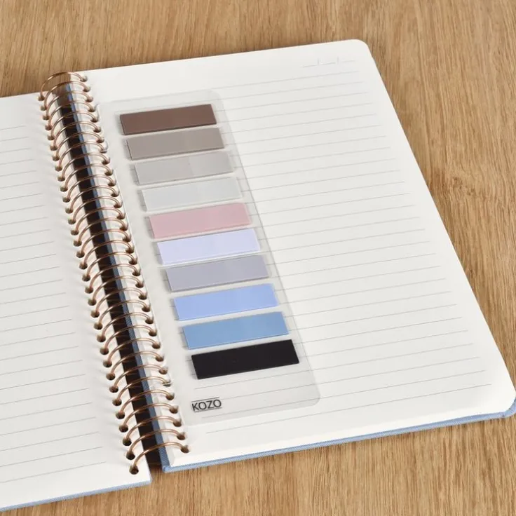 KOZO Indexflikar i snygga, neutrala färger är självhäftande och flyttbara för enkel märkning och organisering. Innehåller totalt 200 flikar i 10 olika trendfärger. Tillverkade av semi-transparent plast med matt yta som är enkel att skriva på. Indexflikarna sitter på ett transparent kort som du enkelt kan fästa och flytta runt i alla sorters spiralblock. Perfekt för att strukturera dina anteckningar på ett enkelt och snyggt sätt. Indexflikarna lämnar inga märken på underlaget de fästs på och passar därför bra för märkning i böcker, kurslitteratur etc. Matchar fint med övriga KOZO produkter och passar extra bra ihop med KOZO Premium Notebook.