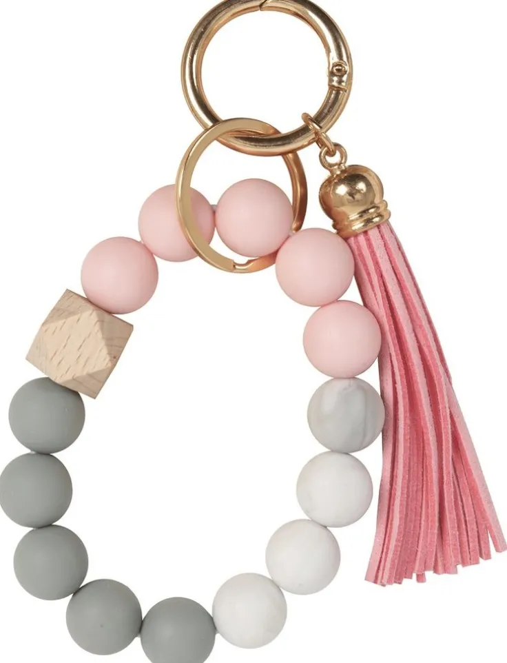 Nyckelring kulor rosa i gummi och trä