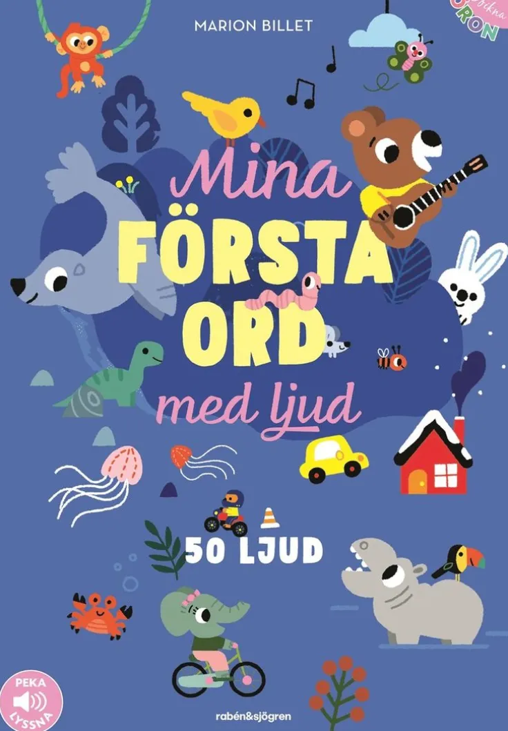 En stor bildordbok för de allra yngsta i stadig kartong! Boken innehåller 50 ljud och massvis med saker att titta på och känna igen. Lyssna på ljudet, leta och hitta. Vad är det för ljud? Är det en åsna? Kan du hitta åsnan? Boken ingår i succéserien Nyfikna öron, slitstarka och stadiga böcker med glada, tilltalande bilder och fint ljud.