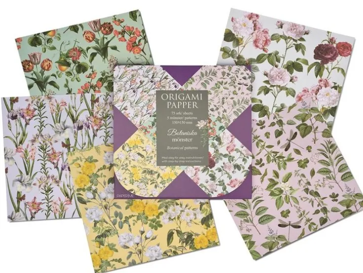 Ett origamipack i en fin och smidig folder. Foldern innehåller 75 vackra ark i fem olika mönster med botaniska motiv.Varje ark är i perfekt storlek (150 x 150 mm), i tunt och följsamt papper som gör vikningen både enkel och rolig.Lär dig två klassiska figurer – Tranan och Svanen. Det medföljer tydliga steg-för-steg-instruktioner på både svenska och engelska. Svanen är lätt att börja med, medan Tranan ger en större utmaning.Upptäck glädjen med origami med detta fina origamipack – förpackat i en smidig folder med kardborrstängning som håller dina papper snyggt på plats. Perfekt för både nybörjare och mer erfarna origamiälskare!Kontaktinformation:PaperMeTryffelslingan 1618157 Lidingö[email protected]
