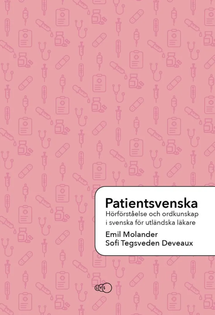 Autentiska intervjuer med sju patienter som berättar om sina diagnoser och behandlingar. Patientsvenska är en övningsbok i medicinsk svenska för läkare, sjuksköterskor och andra yrkespersoner med svenska som andraspråk i sjukvården. Startnivån är anpassad till B2 enligt Europarådets skala, och med varje kapitel kommer en stigande svårighetsgrad. Boken innehåller: – Autentiska intervjuer som ger inblick i det vardagliga språket som patienter själva använder för att prata om sina diagnoser och åkommor. – Hörförståelse med innehållsfrågor och diktamensuppgifter för att upptäcka både vad som sägs och hur det sägs. – Ordkunskapsövningar med fokus på vanliga ord och uttryck för att beskriva symtom, behandlingar och vårdupplevelser. – Diskussionsfrågor om svensk patient- och vårdkultur. – Ett inledande uttalskapitel som tydliggör skillnaden mellan talad och skriven svenska. Patientsvenska är ett klassrumsfärdigt läromedel som kan användas i traditionell undervisning och för självstudier. Till boken hör ett stort antal ljudfiler som nås på bokens webbsida. Där finns även facit till övningarna. I samma serie finns också Journalsvenska och Läkarsvenska samt två böcker i fickformat: Läkemedelssvenska och Sjukdomssvenska. Emil Molander och Sofi Tegsveden Deveaux är lärare i svenska som andraspråk och erfarna läromedelsförfattare i yrkessvenska. De har tidigare skrivit bland annat Kroppen på svenska, Arkitektsvenska och Räkna på svenska.