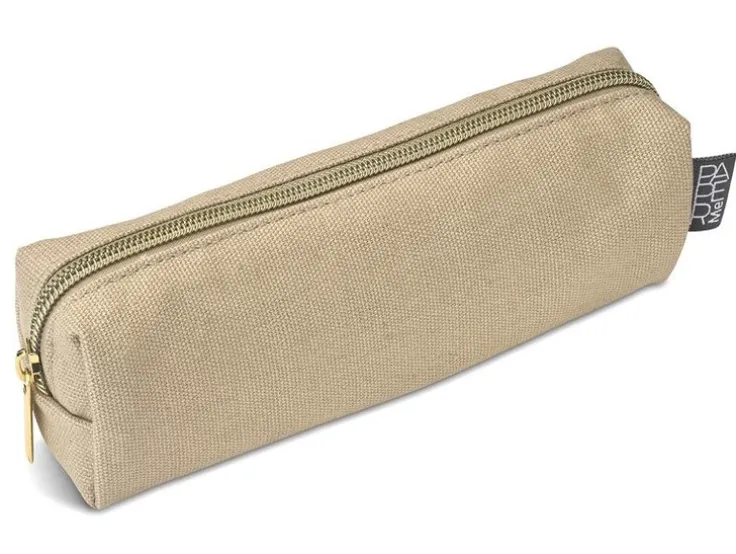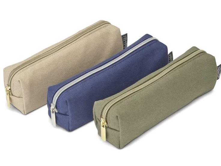 Ett rymligt pennfodral för pennor, linjal, sudd, mm. i kraftig canvas. Pennfodralet är fodrat i matchande färg som utsidan och dragkedjan är i guldfärg som gör att fodralet känns extra lyxigt. Tillverkat av återvunnen canvas. Storlek 195x50x45mm