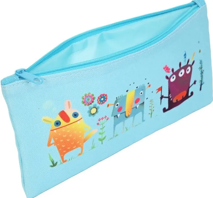 Håll ordning på pennor och småprylar med detta platta pennfodral som pryds av tre busiga monster mot en ljusblå bakgrund. Den smidiga storleken gör det enkelt att ta med fodralet i väskan, gympapåsen eller på resan – varsomhelst!Mått: 7×21 cm. Pennfodralet ingår i Akademibokhandelns egen kollektion – Kollektion Lilla a