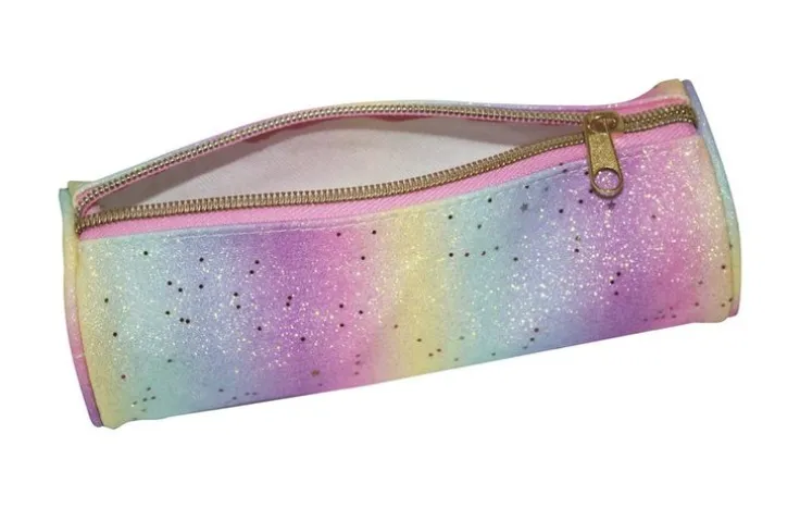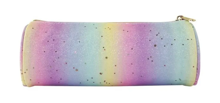 Fint pennfodral i rund form med foder. Detta pennfodral är oemotståndligt sött och går i ett mjukt regnbågsmönster med glitterdetaljer! Passar perfekt för skolstarten eller för att förvara hemmapysslet. Mått: 20 x 7,5 x 7,5 cm. Pennfodralet ingår i Akademibokhandelns egen kollektion – Kollektion Stora A.