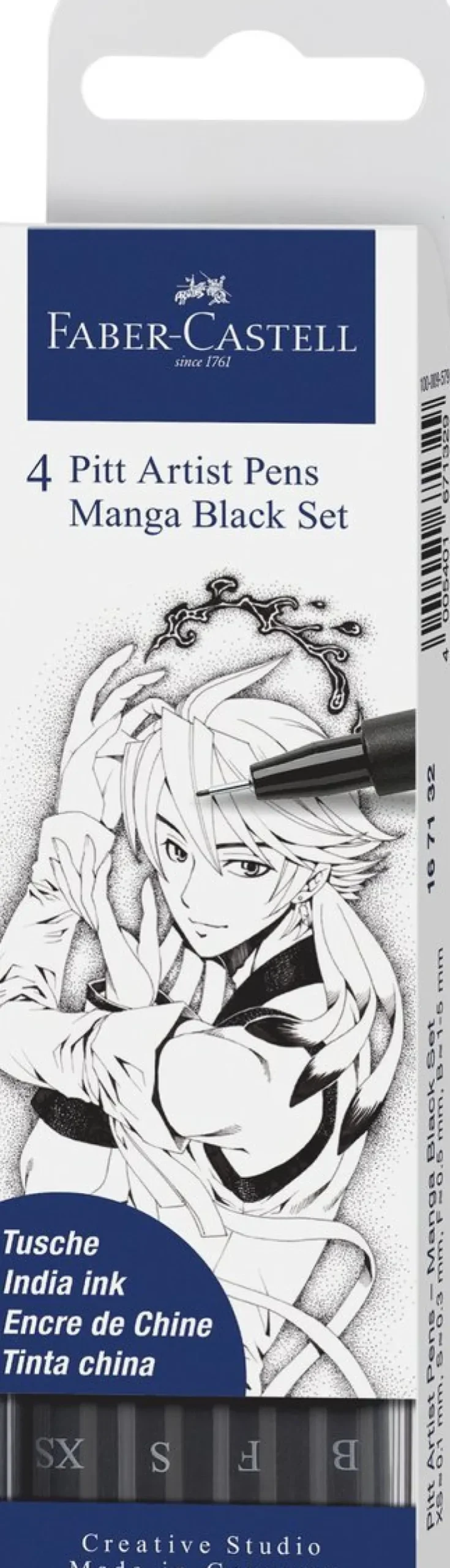 PITT Artist pen Manga Svart, högpigmenterat och ljusäkta India ink. Idealisk för Hand Lettering, skissning, teckning och illustrationer, etui med 4 olika spetsar 0,1, 0,3, 0,5 & brush.