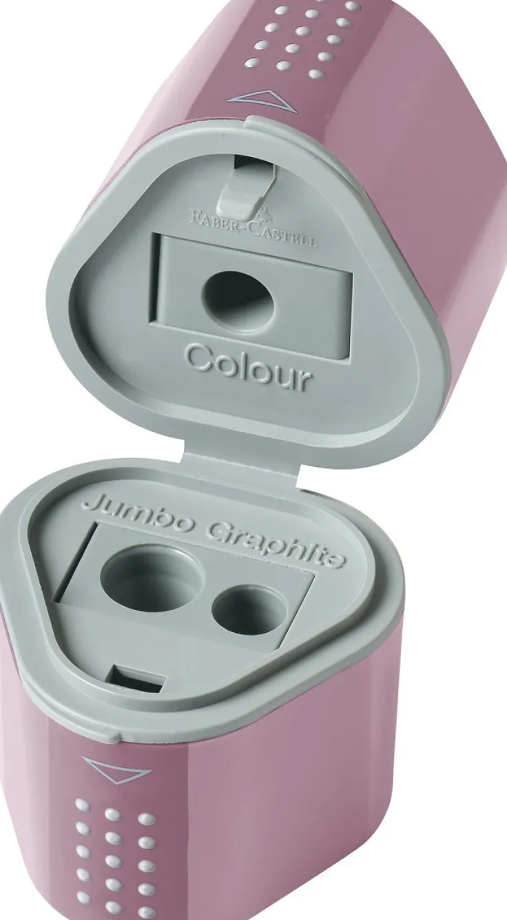 Pennvässare för standard och tjocka blyertspennor samt för färgpennor. Formeraren har två separata stora spånbehållare. Färg: Rosa