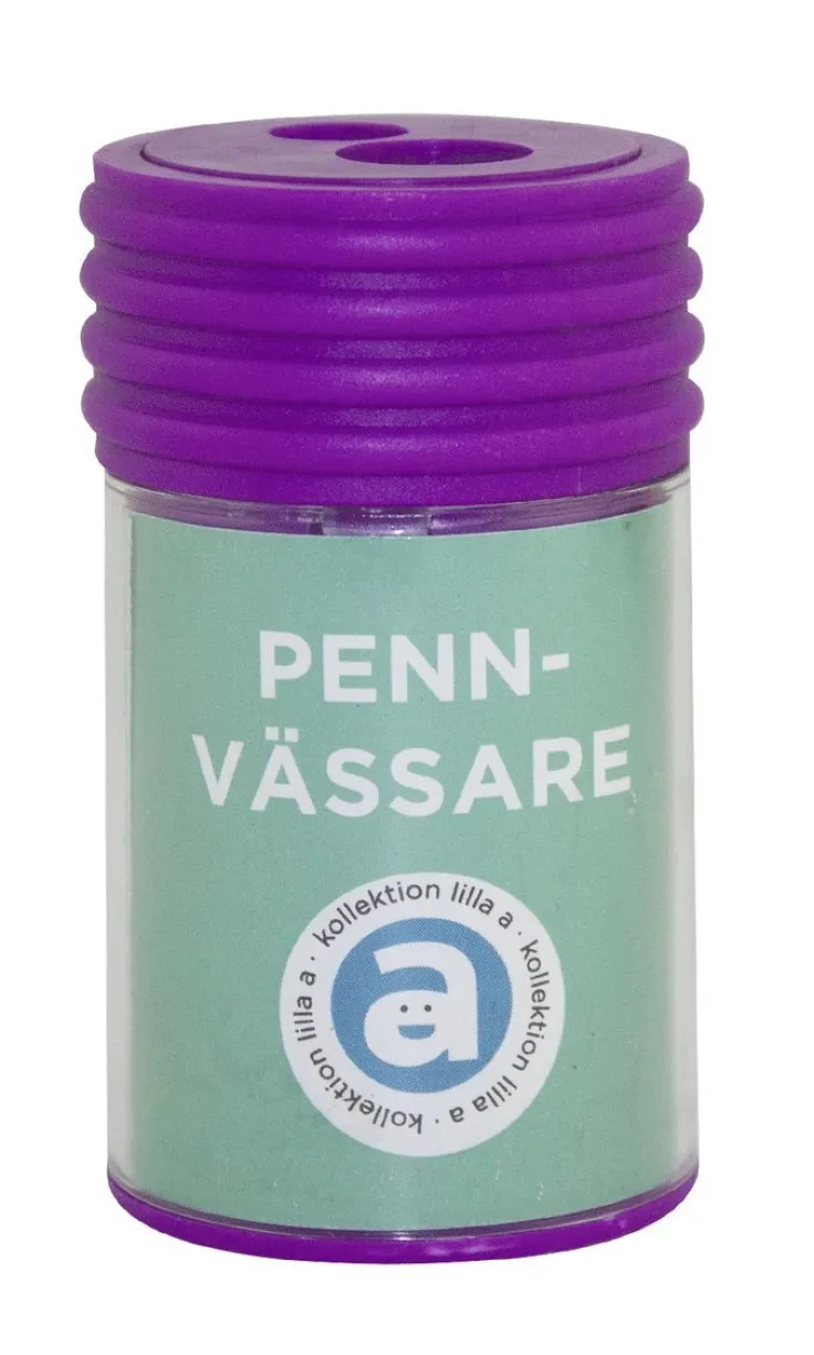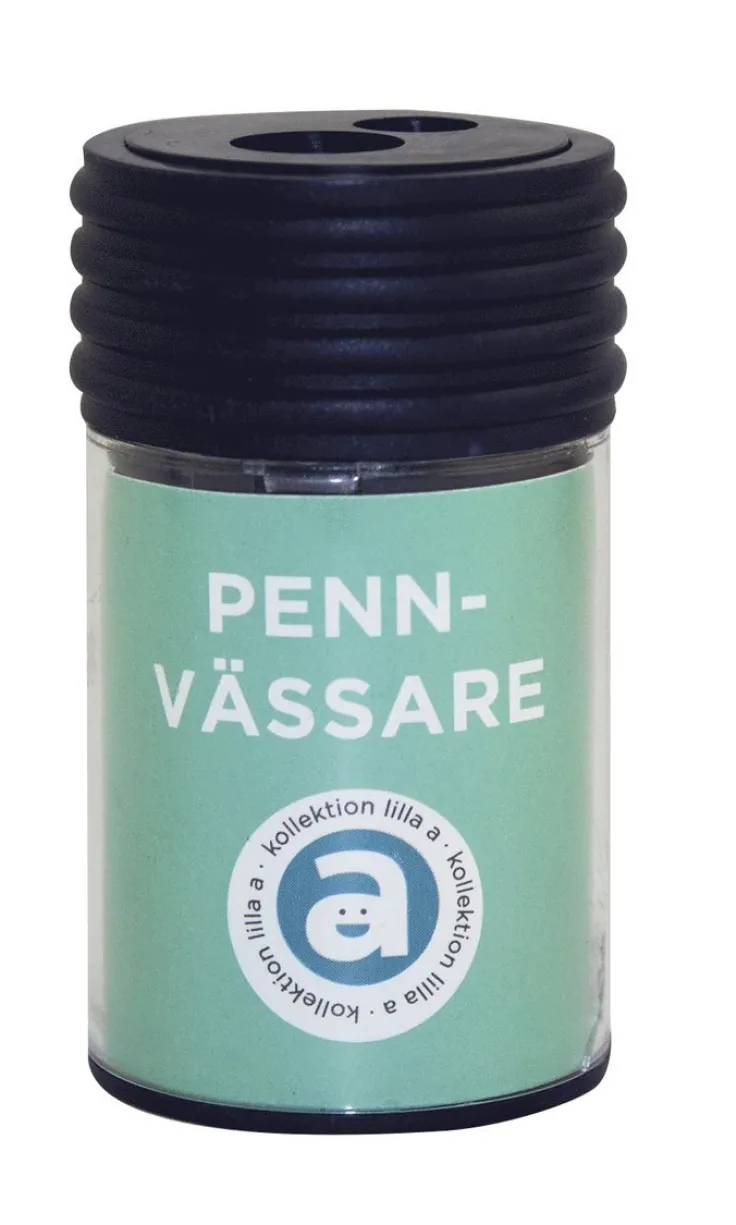 Med denna pennvässare är barnen alltid redo för nya ord och teckningar! Ingår i Akademibokhandelns egen kollektion – Kollektion Lilla a. Se alla varor från kollektionen här.Fakta om produkterna i Kollektion lilla a:• Alla produkter är CE-certifierade• Produkterna är tillverkade av miljövänligt och kemisk utvärderat innehåll• Alla produkter är fria från skadliga kemikalier, som exempel ftalater och PVC• Alla produkter lever upp till svenska och europeiska kemikalieregelverk• För att skydda dina och barnens kläder rekommenderas förkläde under barnens lekstund • Även om alla produkter i kollektionen är godkända för barn från 3 år och vissa t.o.m. från 2 år, rekommenderar vi att man bevakar barnen under deras lekstund• Skydda textilier, kläder, möbler och ytor omkring barn när de målar och ritarObservera att det inte går att välja färg, ett av alternativen kommer att levereras.