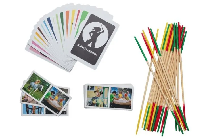 I Matador får du följa med på äventyr längs vägen mot mål, Sjörövarfia är ett klassiskt Fia-spel i Pippis värld, Domino med både bilder och siffror, Plockepinn och Sjörövarpippi där man ska undvika att sitta med sjörövar-kortet på hand när spelet är slut.