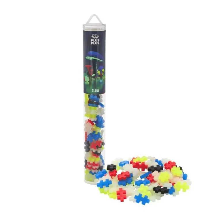 I glowmixen ingår det 100 Plus-Plus bitar. Färgmixen består av Självlysande, Korallröda, Svarta, Neon blåa samt Neon gula Plus-Plus.