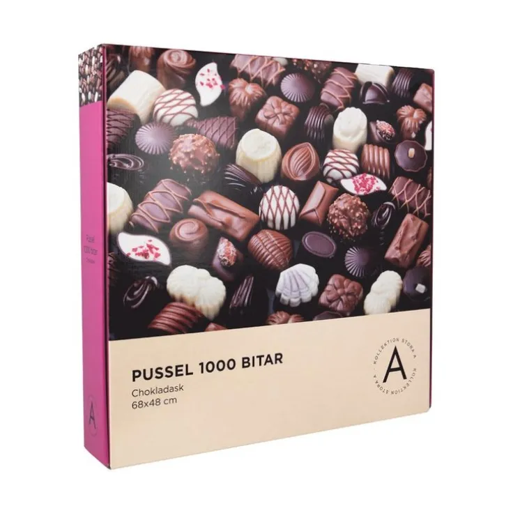 Stig in i en ljuvlig värld av choklad och smaka på pussellyckan. Detta 1000 bitars pussel ingår i Akademibokhandelns egen kollektion – Kollektion Stora A.