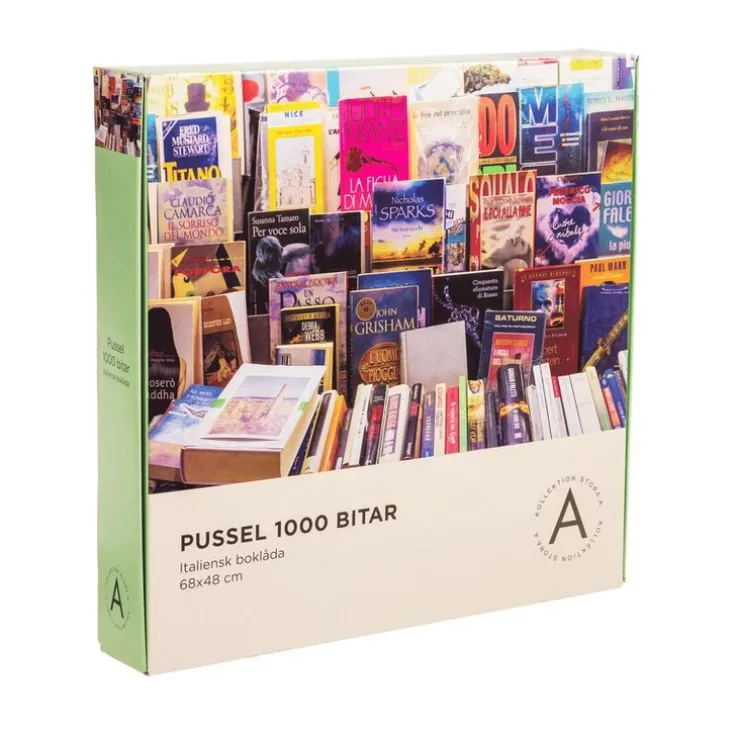 Miljövänligt 1000 bitars pussel med motiv föreställande en italiensk boklåda i regnbågens alla färger. Pusslet är tillverkat av återvunnet material i Finland. Det perfekta pusslet för dig som värnar om vår värld. Pussel med 1000 bitar. Tillverkat i Finland av 100% återvunnet papper. Pusselmotivets mått: 68 x 48 cm. Förpackningens mått: 27 x 27 x 6 cm. Ett härligt 1000 bitars pussel för dig som vill försvinna in i böckernas värld. Pusslet ingår i Akademibokhandelns egen kollektion – Kollektion Stora A.
