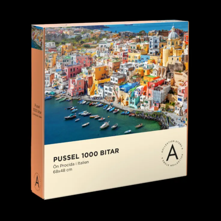 Miljövänligt 1000 bitars pussel med motiv föreställande den vackra ön Procida i Italien. Pusslet är tillverkat av återvunnet material i Finland. Det perfekta pusslet för dig som värnar om vår värld. Pussel med 1000 bitar. Tillverkat i Finland av 100% återvunnet papper. Pusselmotivets mått: 68 x 48 cm. Förpackningens mått: 27 x 27 x 6 cm. Ett vackert 1000 bitars pussel som får dig att drömma om ett italienskt medelhavsparadis. Pusslet ingår i Akademibokhandelns egen kollektion – Kollektion Stora A.