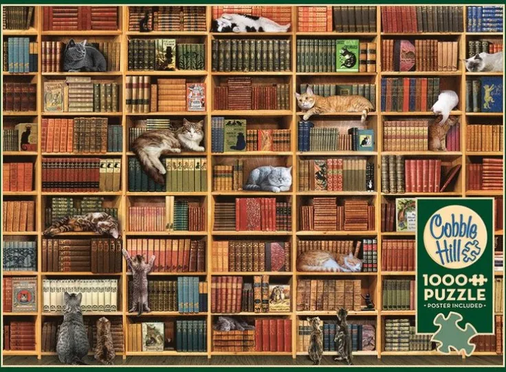 The Cat Library – 1000 bitars pussel – Cobble Hill har otroligt vackra och högkvalitativa pussel, med framför allt djur och naturmotiv. Alla pussel från Cobble Hill har oregelbundna pusselbitar, för ett mer spännande och utmanande pusslande. En snygg poster medföljer över pusslet som kan användas som hjälpmedel vid pusselläggningen eller varför inte ramas in för att sättas upp på väggen?!