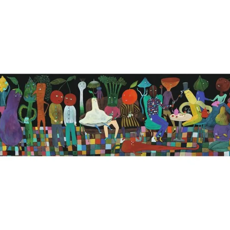 Detta fascinerande 350-bitars pussel har ett extra långsmalt format (33 x 97 cm) och bjuder på en härlig utmaning med sitt detaljerade motiv som skildrar en tebjudning för roliga figurer i form av frukt och grönsaker. Få en inblick i illustratörens fantasirika värld där det finns mängder av detaljer att upptäcka under pusslandet. Till pusslet medföljer en affisch av motivet i naturlig storlek som kan användas som referens medan pusslet läggs, som dekoration på väggen eller till och med som en slags fusklapp, genom att lägga pusslet ovanpå affischen för att få ledtrådar till var varje pusselbit ska placeras eller vilka detaljer som ska finnas med på nästa pusselbit. Pusslets höga kvalitet garanterar att det tål många omgångar av pusslande. Det är tillverkat i Europa av FSC®? MIX certifierad kartong, vilket inte bara innebär kortare transporter utan också en betydligt mer miljövänlig produkt. Det långsmala formatet gör det enklare att överblicka hela motivet och gör det mer behagligt att lägga pusslet då du inte behöver sträcka dig lika långt eller lika mycket för att lägga ut bitarna.