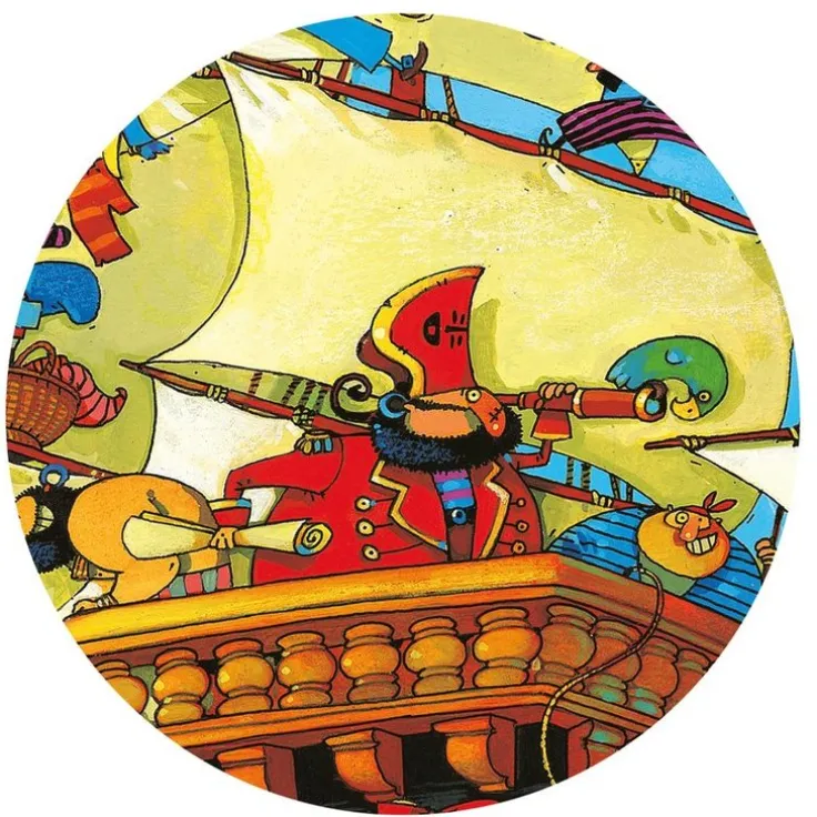 Ett underbart rikt illustrerat 54-bitars pussel med Barbarossas stora båt som motiv. Asken som pusslet ligger i fungerar även fint som dekoration till barnrummet. Storlek på pusslet: 37×40 cm