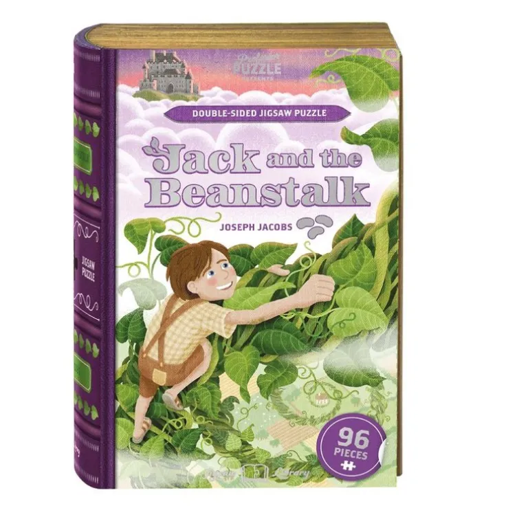 Dubbelsidigt pussel. ”Jack and the Beanstalk” är bara en bit av vårt pusselbibliotek. Det här dubbelsidiga pusslet med 96 bitar har en vacker illustration från en ikonisk scen på ena sidan med ett utdrag ur boken på den andra, vilket gör den till en perfekt present för både bokälskare och ”pusslare”.