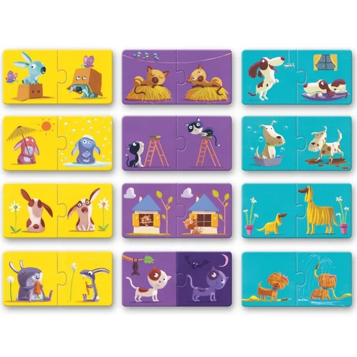 Barnpussel med 12 motiv med 2 bitars pussel för de minsta barnen. Det här barnpusslet från Djeco har motsatser som motiv, tex dag och natt, liten och stor, ren och smutsig med flera. Barnpusslet är tillverkat i kraftig kartong och kommer i en snygg liten låda. Att lägga pussel tränar det logiska tänkandet och öga-hand-koordinationen.