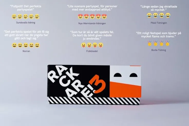 4 537 600 nya sätt att få mamma att sätta i halsen! Efter över 75 000 sålda rackare kommer här 600 nya kort som avhandlar allt från pandemi till elsparkcyklar! Rackare är ett löjligt enkelt festspel, till den grad att endast puckon kan missuppfatta reglerna. Varje runda lägger en spelare ut ett vitt kort och de andra fyller i med sitt bästa svarta kort. Den som lagt det vita kortet utser den roligaste kombinationen.Först till tio poäng har vunnit spelet och får titeln ”en riktig liten rackare”. Om ni mot förmodan vill spela Rackare passar det lika dåligt på förfesten som på begravningsfikat, i såväl stora som små sällskap.