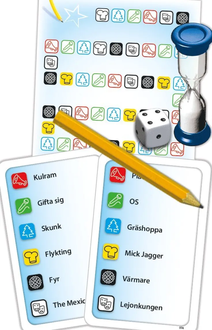 En resespelsversion av det roliga spelet där var och en ritar turvis bilder ur olika kategorier. Det finns sex olika kategorier i spelet och timglaset anger hur länge man får rita. Rita och gissa är ett spel för familjen som man kan spela individuellt eller i lag.