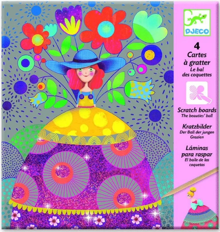 Skrapa fram fantastiska färger och mönster med det här barnpysslet från Djeco. Fyra olika skrapkort med flickor i vackra och färgsprakande klänningar, träverktyg att skrapa med medföljer. Ett perfekt barnpyssel att ha med på resan eller till sommarstugan, garanterat kladdfritt!