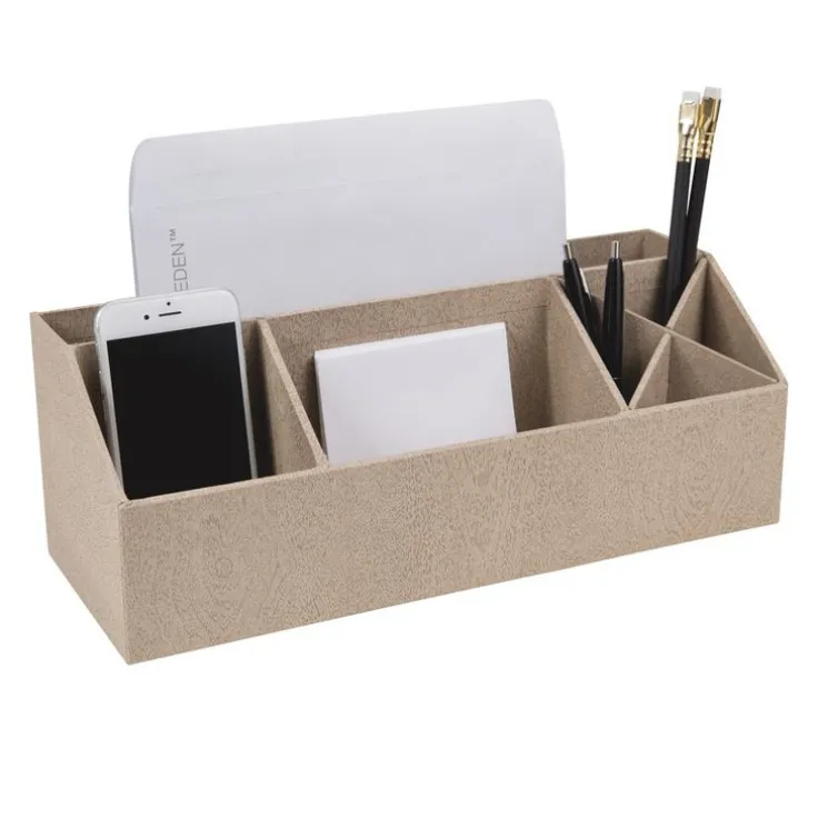 ELISA skrivbordsförvaring från svenska familjföretaget Bigso – Praktiskt skrivbordställ som hjälper dig att hålla skrivbordet rent. Perfekt för att strukturera upp detaljer både i hemmet och på kontoret. Med gummifötter som skyddar underlägget och ökar stabiliteten. Stark konstruktion som tål att användas varje dag.Ingår i en snygg och stilren skrivbordserie från Bigso som passar lika bra på kontoret som hemma, där du vill ha ordning och reda.Tillverkad av 100% återvunnen fiberpapp med ett ytskikt av präglat papper som imiterar ljus ek.Mått: 33,5×12,5×12,5 cm