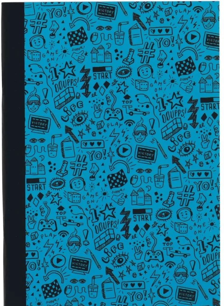 Skrivhäfte i A5-format med en livlig mönsterbild mot blåbakgrund som för tankarna till spel och sociala medier. Fyll bokens linjerade sidor med allt mellan himmel och jord! De mjuka pärmarna gör skrivhäftet flexibelt och lätt att ta med överallt.80 linjerade sidorA5-formatTillverkad av FSC-märkt papper, ett bättre val för dig och vår världEtt lekfullt skrivhäfte att fylla med tankar, texter och kludd. Ingår i Akademibokhandelns egen kollektion – Kollektion Stora A.