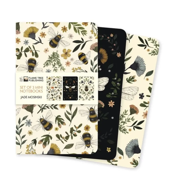 Set med tre anteckningsböcker i A6 format med gördel runt. Omslagen är vackert folierade. Innehåller 64 omväxlande linjerade och blanka sidor (höger sida är linjerad). Anteckningsböckerna har rundade hörn och är sydda i ryggen. Varje anteckningsbok har en unik design.Jade Mosinski är en designer och illustratör baserad i Derbyshire som älskar att skapa vackra och intrikata illustrationer inspirerade av naturen, med detaljerade linjeteckningar. Hon tycker också om att skapa mer färgglada, feminina mönster med djärvare former och bildspråk.