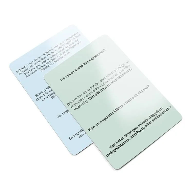 Detta frågespel för hela familjen innehåller 380 lärorika frågor och svar om den svenska naturen.