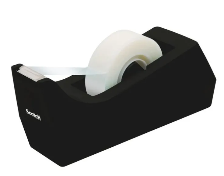 Stabil tejphållare tillverkad av 100% återvunnen plast. Klassisk svart, klarar rullar upp till 33 m. Tejp medföljer ej.