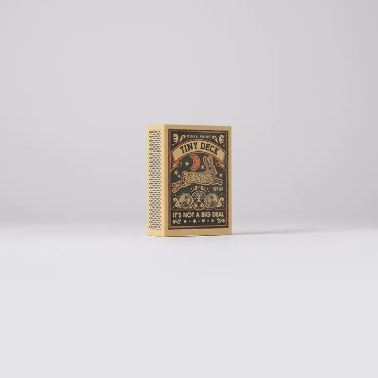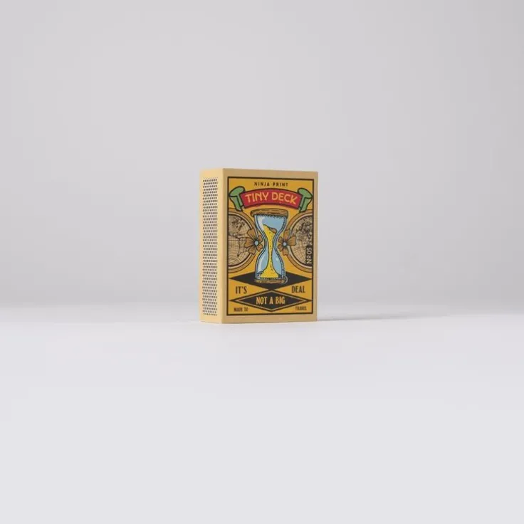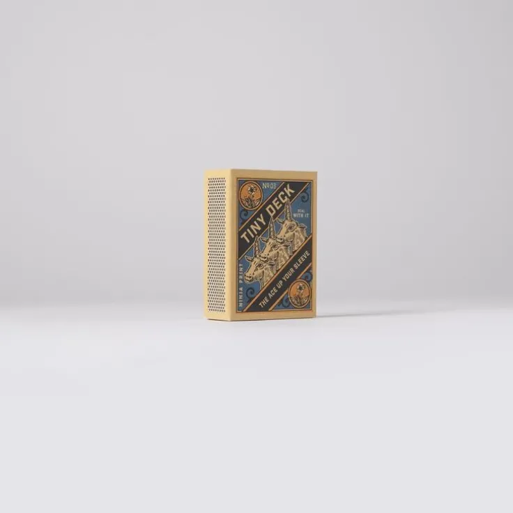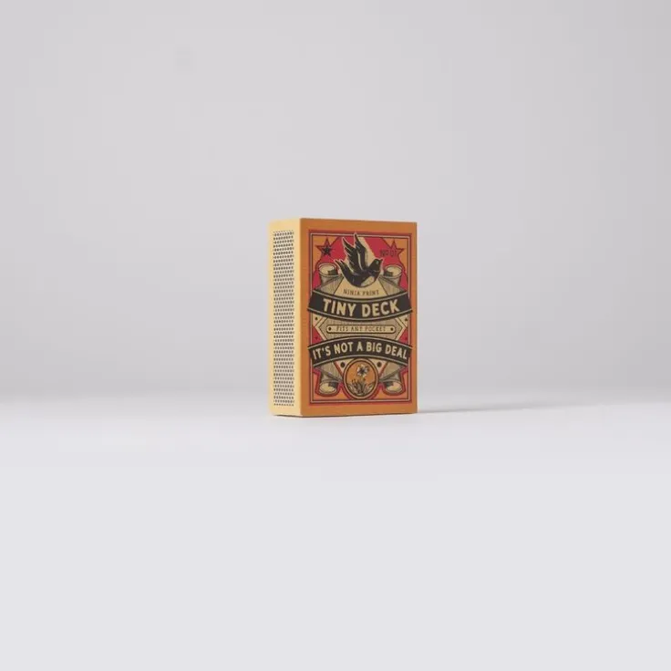 Tiny Deck är en serie tändstickskortlekar i sex olika motiv. Korten är exakt halva standardstorleken och hundra procent korrekta, tryckta på smooth 320 gsm spelkortskartong med blue core av högsta casinokvalitet. De är perfekta för resan, för barn, för patiens, och för samlare. Tiny Deck trycks i en begränsad upplaga. Passa på, innan de är slut för alltid. Man ska inte leka med elden men en kortlek kan man ha hur kul som helst med. Det gäller även i den kreativa processen. Jag ville skapa askar med samlarvärde och självklart behövs då 6 st olika askar med detaljerade illustrationer. Även om formatet är litet så känns det stort att få ha formgett Tiny Deck säger Mikael Selin.Observera att det inte går att välja motiv, ett av alternativen kommer att levereras.