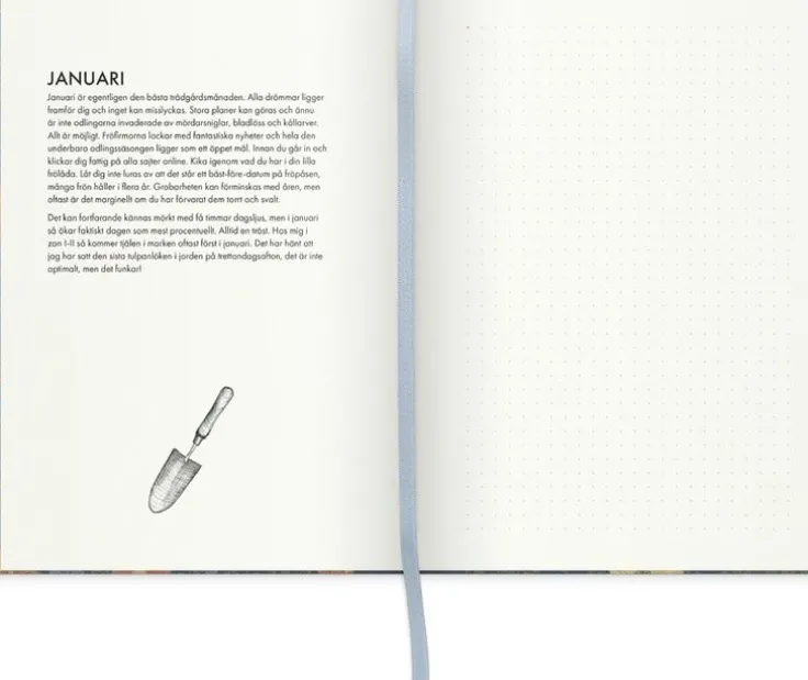 Hanna Wendelbo är en formgivare med specialkompetens inom mönsterdesign, med har även ett klappande hjärta för blommor och trädgård. Hon har en gedigen erfarenhet av blomsterodling och hon vet allt om hur du lyckas – med frön, plantor och knölar, med skötsel, skörd och användning – oavsett om du odlar på friland, i rabatt eller pallkrage.Trädgårdskalendern är en odaterad kalender som följer med dig från år till år och ger dig en plats att samla alla dina odlingsanteckningar. Varje månad delar Hanna med sig av värdefulla tips för odlingen, inklusive förberedelser inför säsongen, rekommenderade blomsorter och grönsaker, samt råd om hur du tar hand om dina växter.I Trädgårdskalendern får du möjlighet att dokumentera din planering, notera vilka sorter du odlar, följa hur det går och till och med skissa på hur du vill designa din trädgård. Genom att samla all denna information får du en fantastisk grund inför nästa odlingssäsong och kan bygga vidare på tidigare erfarenheter för att skapa en ännu vackrare och mer produktiv trädgård.Format: A5. Layout: Liggande. Vecka/uppslag. Omslag: Kartong. Inbunden. Detaljer: Gummiband. Märkband. Antal sidor: 160. Pappersvikt: 90 g. Miljöinformation: FSC®. Varumärke: Stora A.