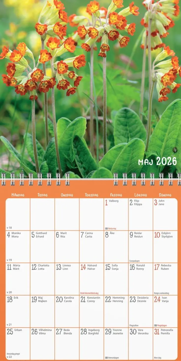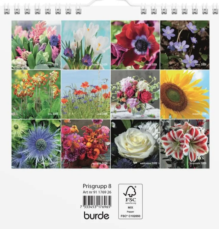 Väggkalender 2026 från Burde. Format: 160×160 mm. Layout: Månad/blad. Kalendarium: 2026-01-01 – 2026-12-31. Spiralbunden. Innehåll: Flaggdagar, helgdagar/aftnar, namnsdagar, temadagar/händelser,. Antal sidor: 12. Miljöinformation: FSC®.