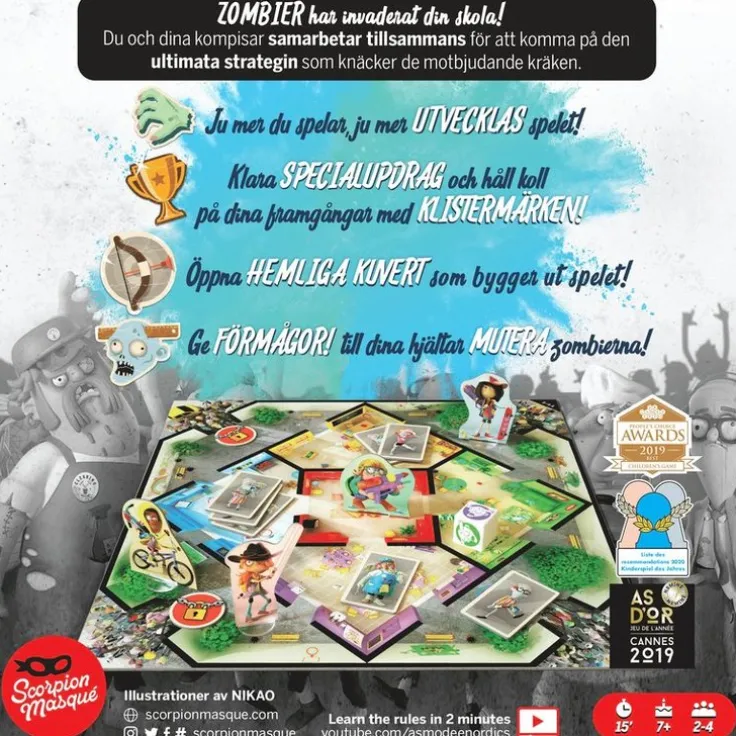 Samla dina vänner och kom på den bästa strategin för att besegra hemska monster i ett sammarbetsspel som dessutom är det första ”Legacy” spelet för barn, ett spel som förändras efter varje parti! Klara av specialuppdrag och markera din utveckling med hjälp av Trophy klistermärken, precis som i ett data-spel. Desto mer du spelar, desto mer förändras spelet! Öppna mystiska kuvert vars innehåll berikar spelet med nytt innehåll. Ge krafter till dina hjältar och mutera dina zombies! Besegra zombies och lås skolans fyra ingångar för att vinna tillsammans!